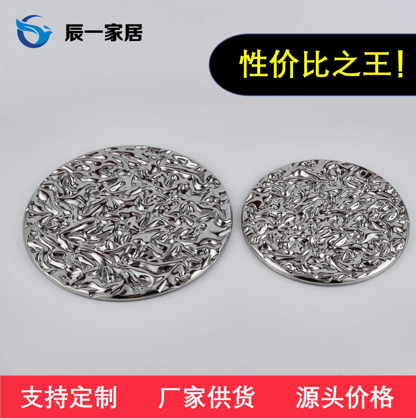 New Chinese modern minimalist European-style wave pattern concave-convex round tray decoration model room sales office soft decoration