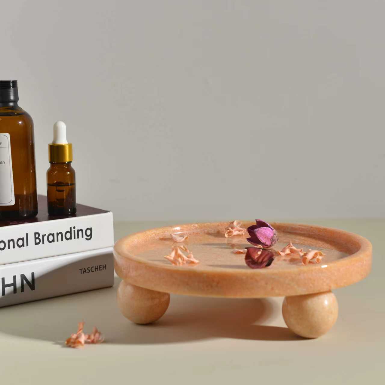 Factory Direct Sales Sunset Red Marble Tray Living Room Entrance Storage Round Tray Desktop Jewelry Decorative Ornaments