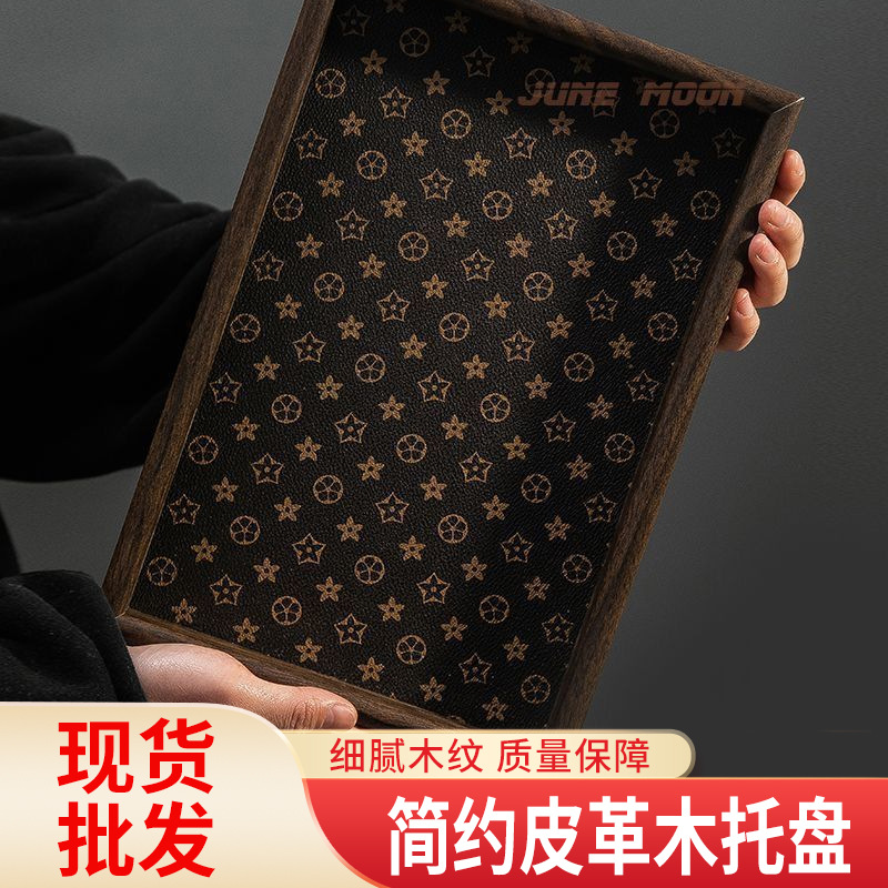 Walnut Color Leather Tray Classic Color Light Luxury Jewelry Bracelet Storage Tray Living Room Dining Room Household Tray