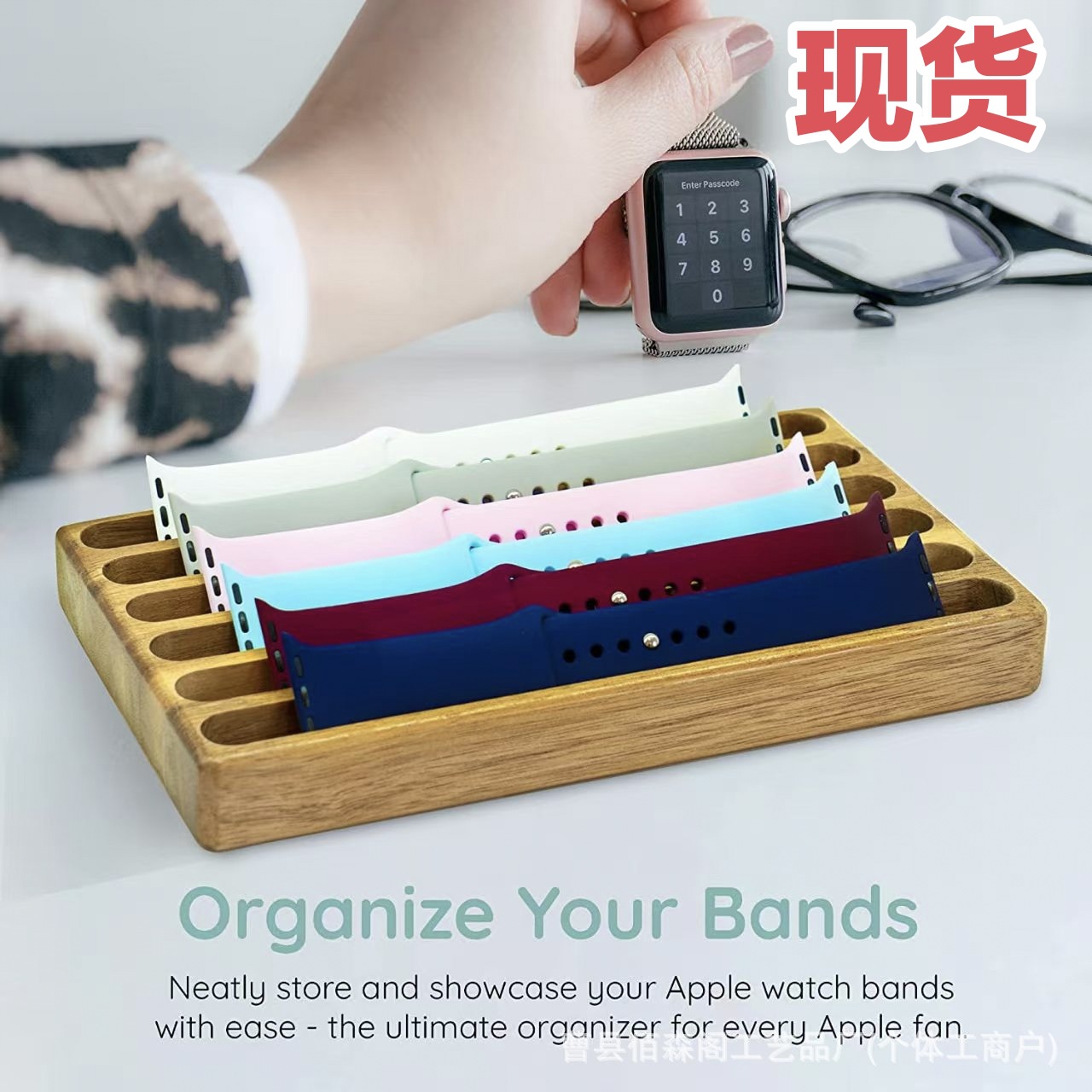 Ready-Made Wooden Watch Strap Storage Box Desktop Watch Strap Display Tray Solid Wood with Compartments Men's and Women's Watch Strap Tray