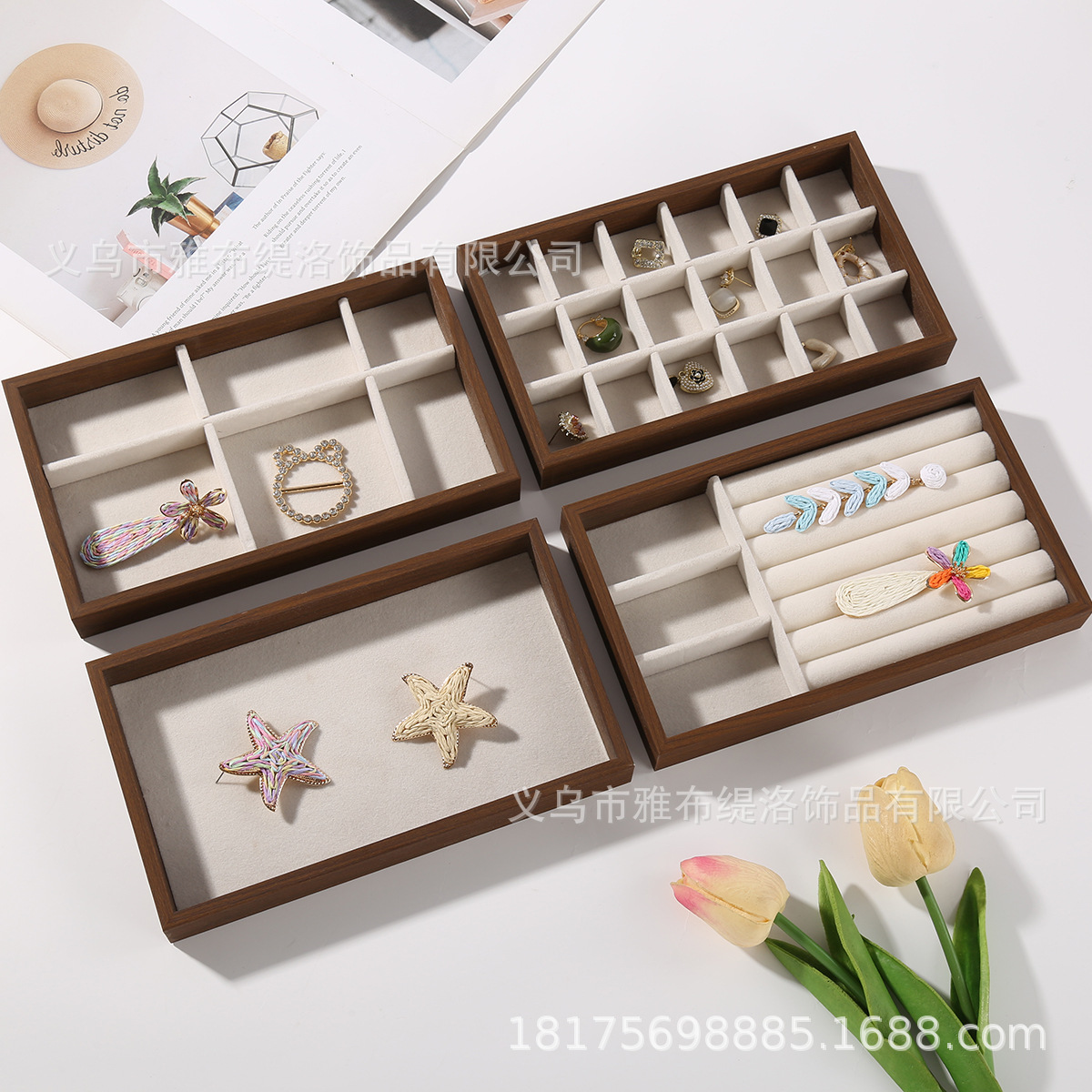 Walnut Velvet Jewelry Box Light Luxury Jewelry Storage Box Earrings Ring Necklace Storage Display Tray Factory Direct Supply