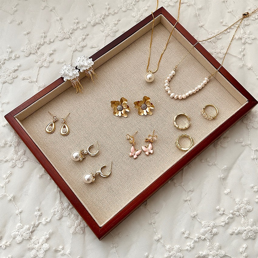 Wood Grain Chinese Style Jewelry Display Tray for Rings, Bracelets, Pendants, Jewelry Counter Live Display, Viewing Jewelry Tray