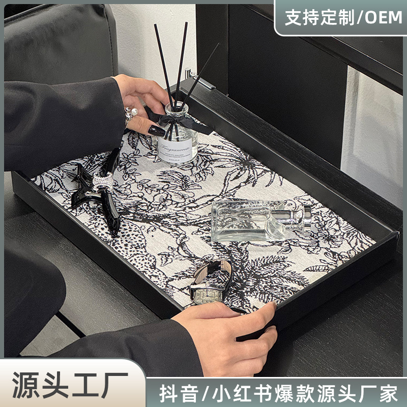 Light Luxury Flower and Bird Leather Aromatherapy Tray High-grade Feeling Storage Storage Tray Living Room Coffee Table Decoration Leather Hallway Tray