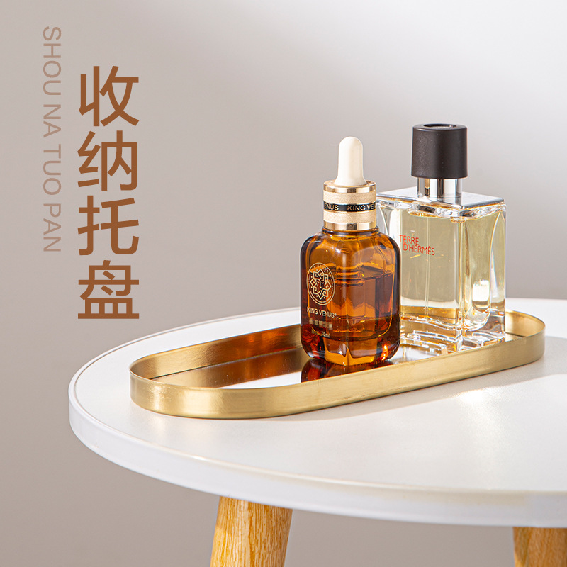 Nordic Storage Tray Mirror Light Luxury Jewelry Plate Cosmetic Storage Basin Desktop Decoration Hotel Aromatherapy