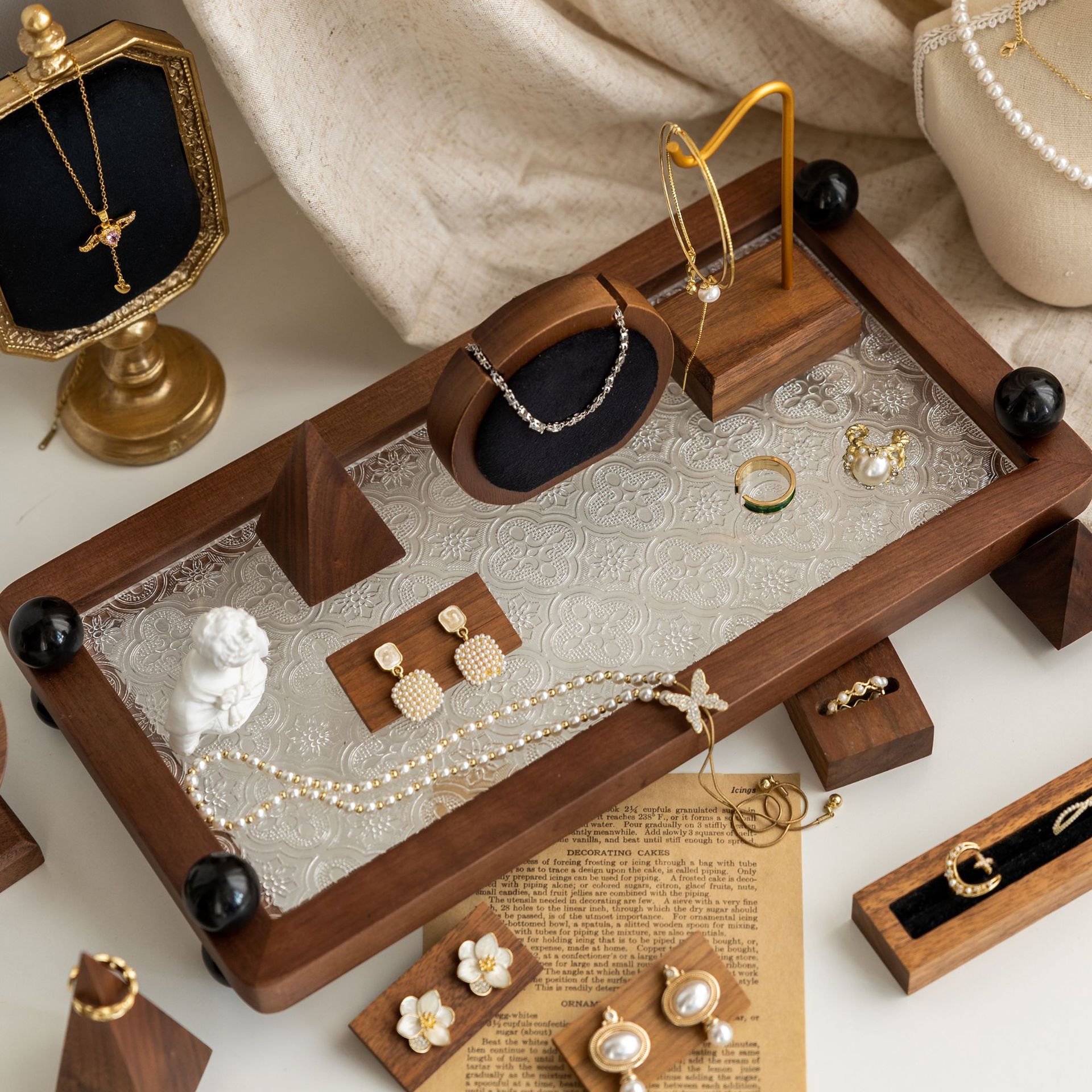 Walnut Jewelry Tray Counter Jewelry Storage Large Capacity Ring Tray Earring Tray Necklace Jewelry Box Jewelry