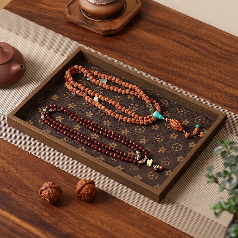 New Chinese Style Bracelet Wooden Tray Advanced Sense Leather Jewelry Key Storage Ornaments Desktop Jewelry Display