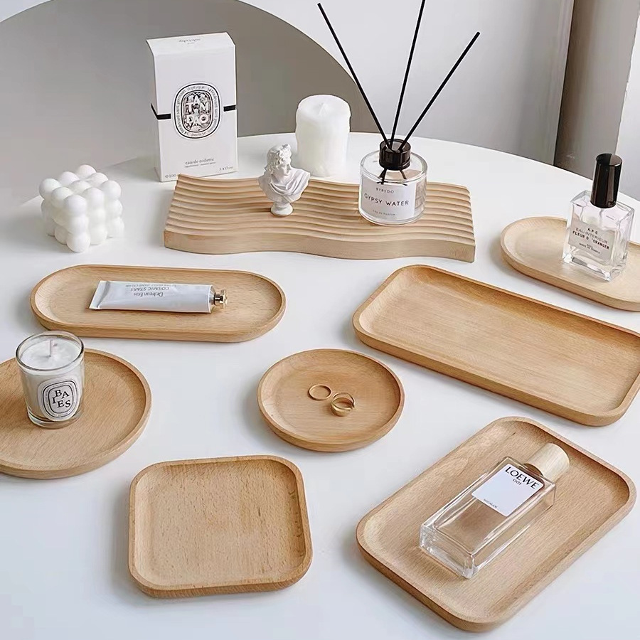 Beech tray solid wood jewelry storage tray wave pattern ins photography props decoration photography background cloth