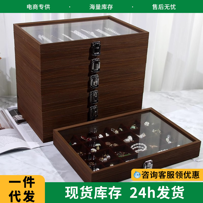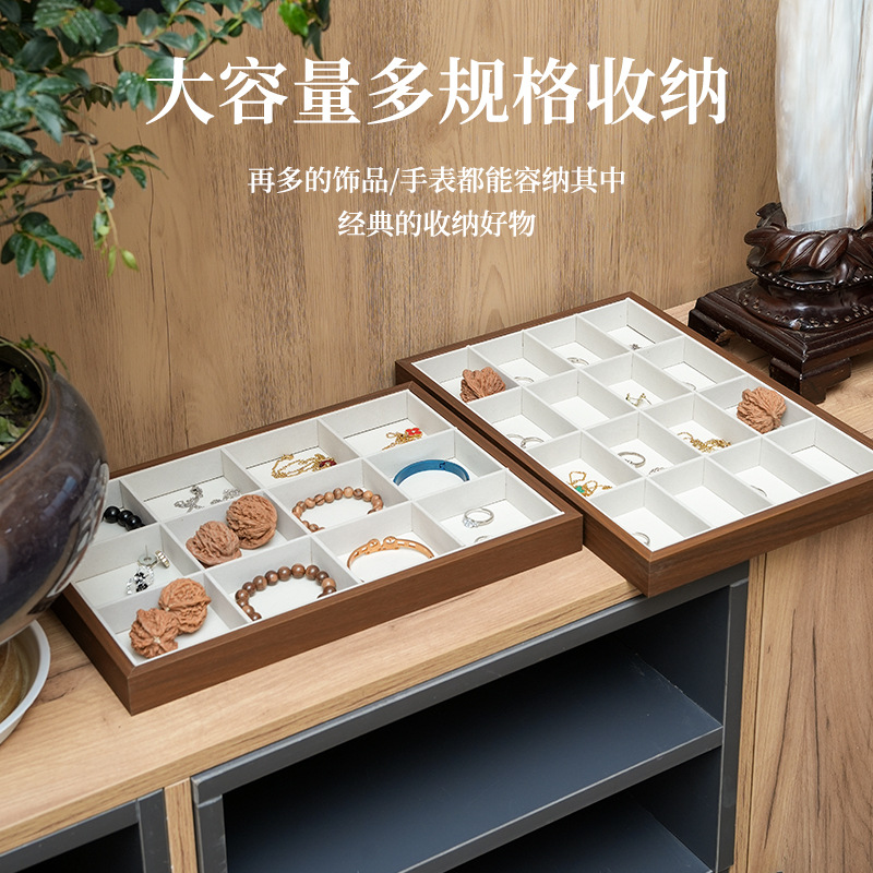 Necklace Storage Box High-Grade Exquisite Jewelry Necklace Ring Stud Earrings Display Large Capacity Wooden Single Layer Tray
