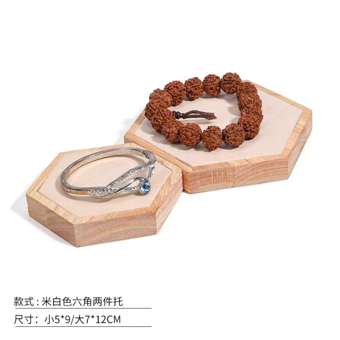 Solid Wood Microfiber Fleece Jewelry Display Props Ring Bracelet Pendant Earrings Multifunctional Hexagon Display Tray