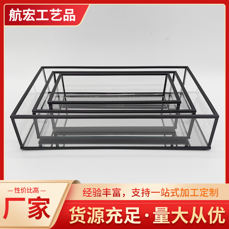 Black Glass Tray Scandinavian Retro Black Strip Glass Jewelry Tray Cosmetics Storage Tray Home Storage Tray