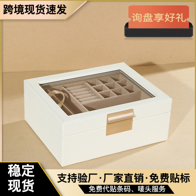 Cross-border PU Two-layer Window Removable Tray Jewelry Box Earrings Ring Necklace Bracelet Princess Jewelry Box Storage
