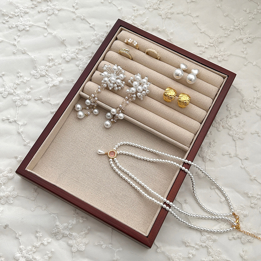 Walnut linen Rings Display Tray Jewelry See Pallet Necklace Ring Bracelet Storage Shooting Props