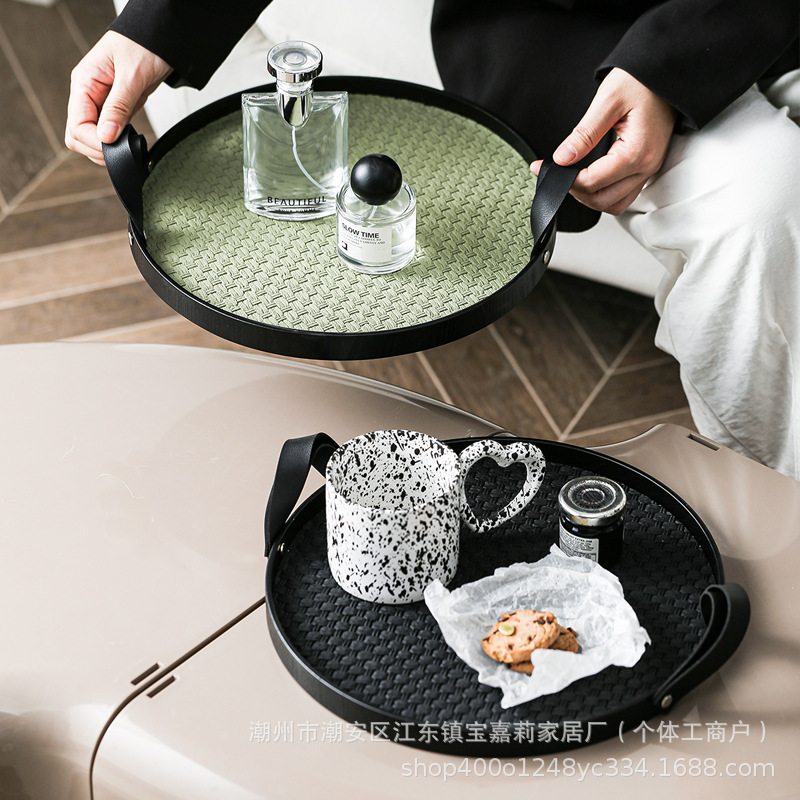 Light Luxury Leather Aromatherapy Tray, Round Entrance Key Storage, Jewelry Desktop Ornaments Storage Tray, High-End