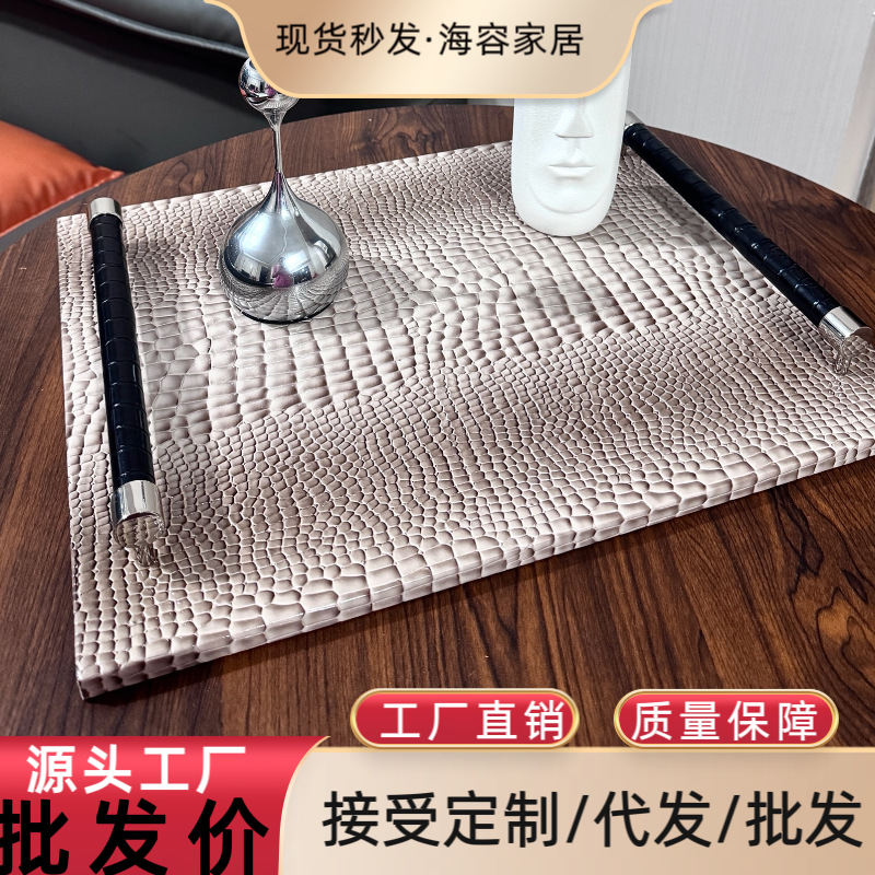 High-End Light Luxury Home Decoration Hotel Model Room Tray Entrance Jewelry Desktop Storage Leather Decoration Tray