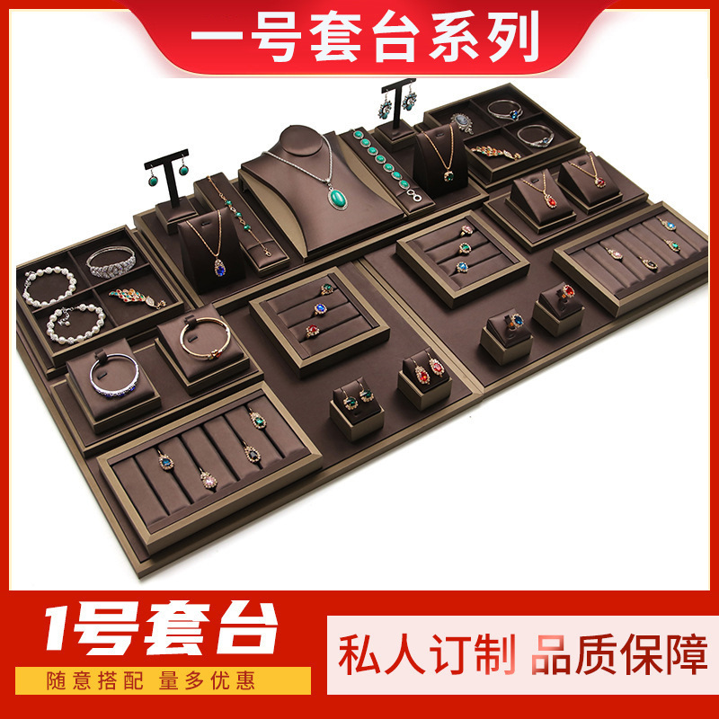 Brown Brushed Leather Jewelry Display Stand Ring Pendant Display Set Jewelry Counter Props in Stock Cross-Border Exclusive Supply