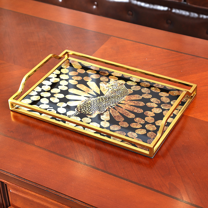 Factory wholesale storage tray living room coffee table tea cup creative decoration home decoration crafts metal glass
