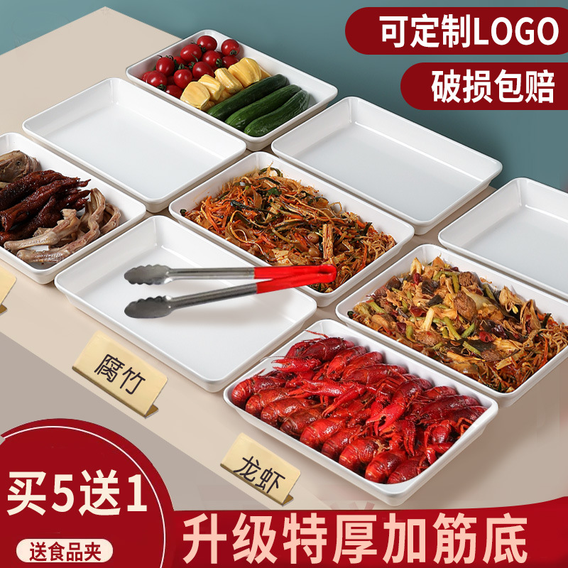Delicatessen Display Plate White Rectangular Stewed Vegetable Braised Cold Dish Mixed Vegetable Tray Duck Goods Imitation Porcelain Plastic Plate Commercial