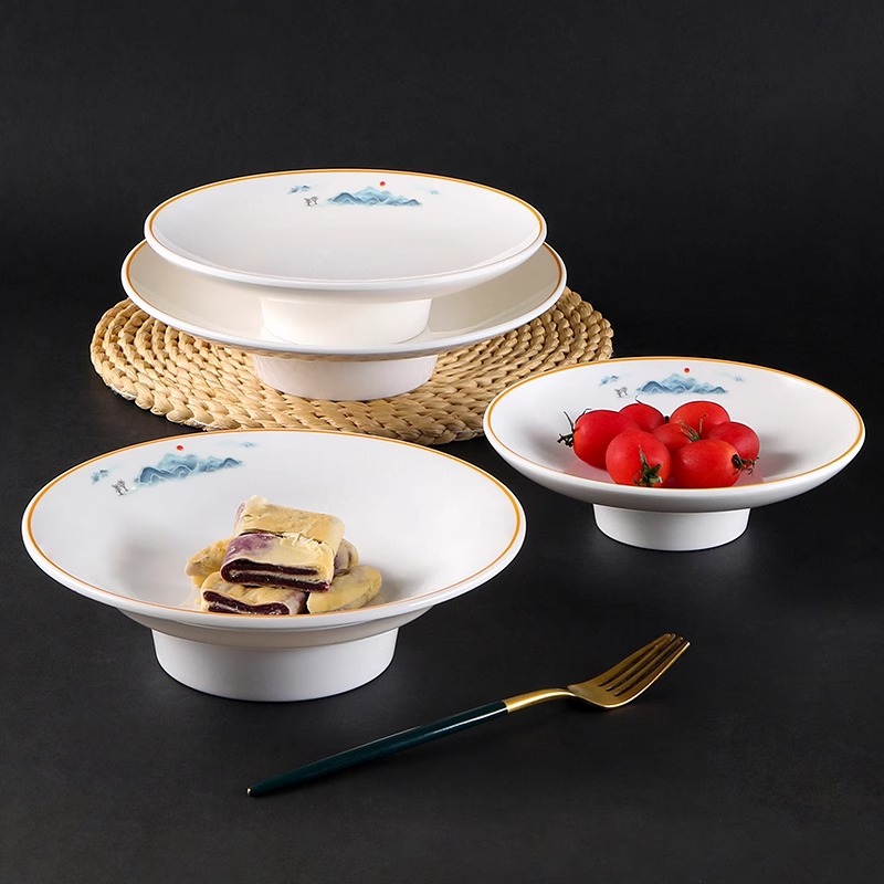 Chinese-style melamine high-foot plate hotel restaurant buffet cake dessert snack display plate fruit plate cold dish commercial