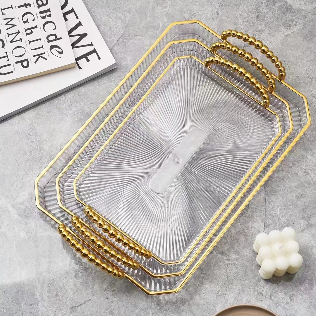 European-style Golden Rectangular Tray Fruit Tray Tea Tray Pastry Plate Cake Plate Jewelry Box Tray Plate Cake Rack