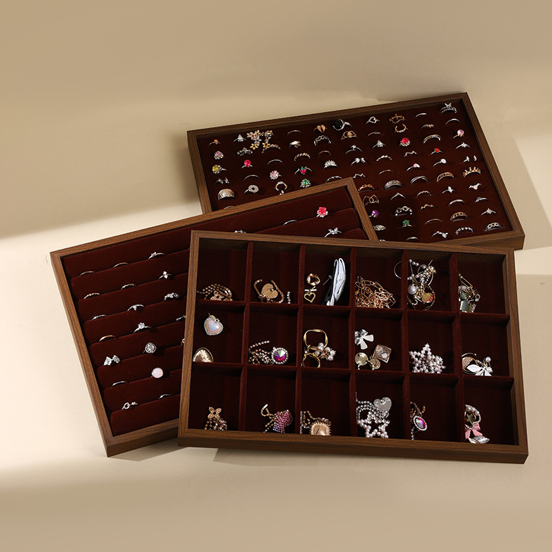 Flannel multifunctional jewelry box household drawer storage box ring jewelry box jewelry display plate manufacturers wholesale