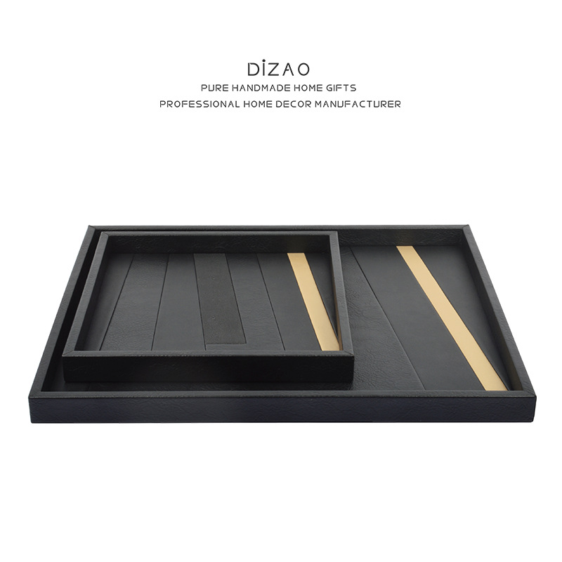 Modern Light Luxury Simple Handmade Stitching Three-dimensional Leather Tray Model Room Living Room Storage Plate Creative Soft Decoration
