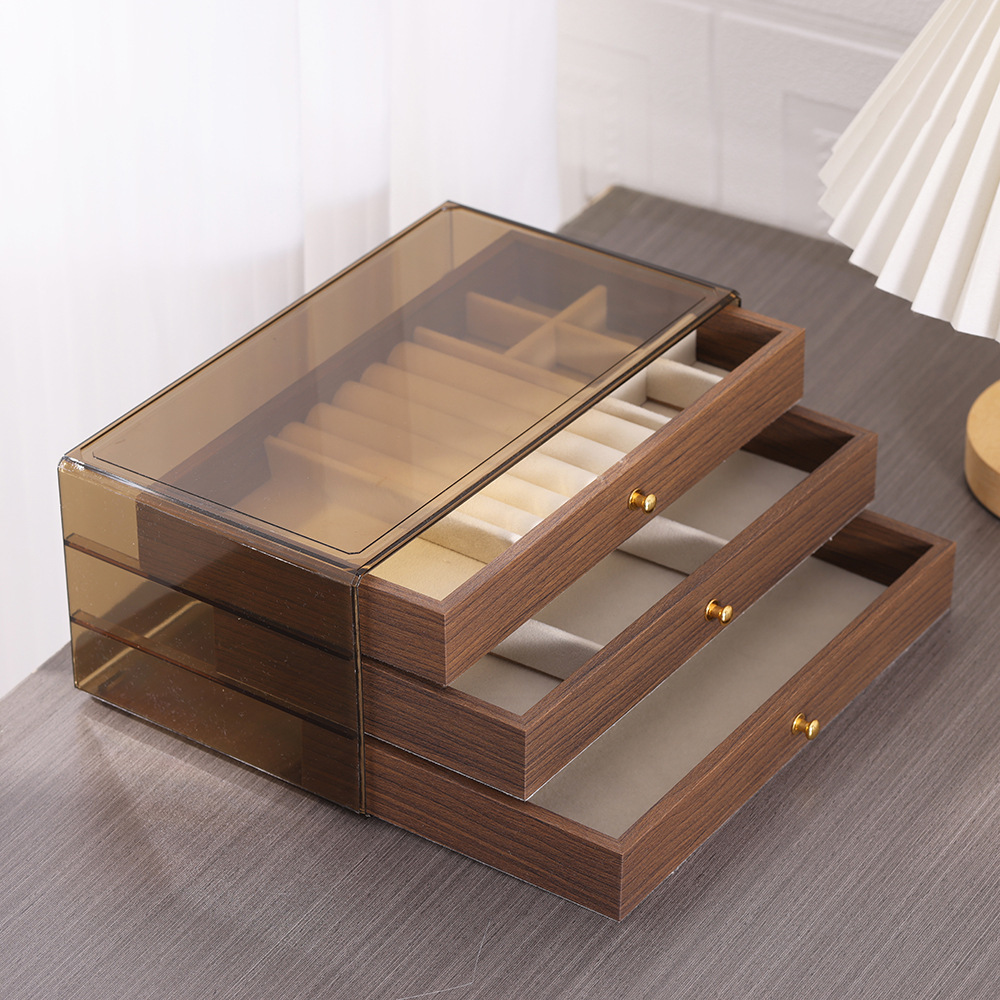Walnut Grain Jewelry Box Multi-Layer Large-Capacity Storage Necklace Earrings Ring Bracelet High-End Wooden Jewelry Box