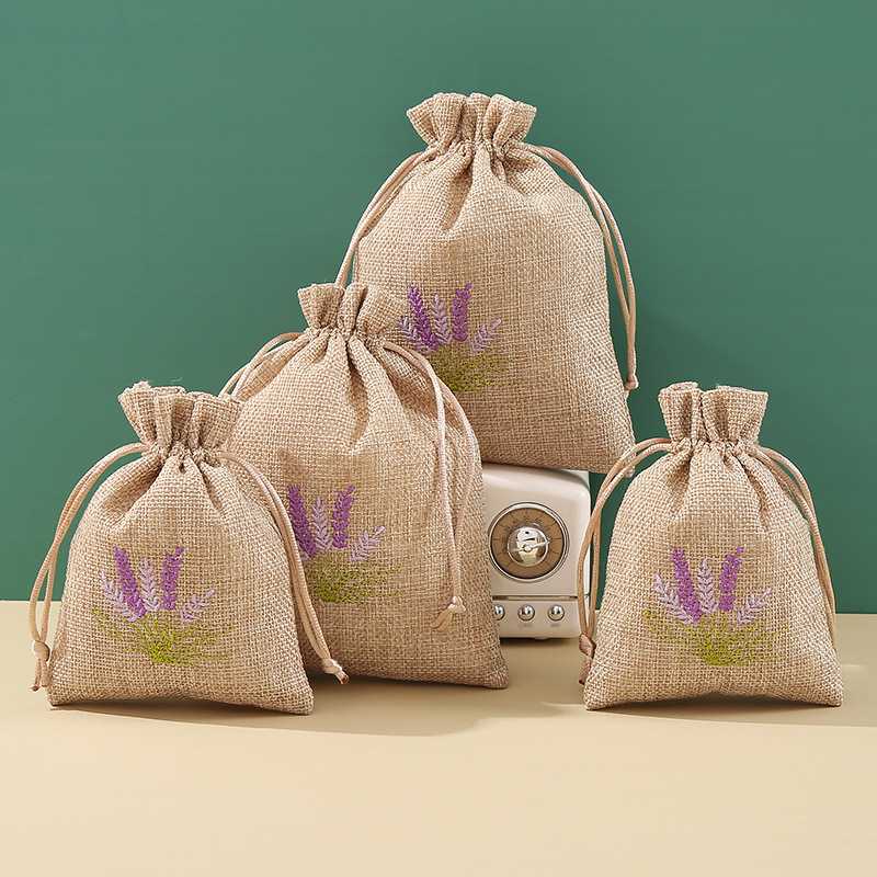 Factory spot lavender embroidery cotton bag drawstring bunched linen bag jewelry bag empty sachet bag wholesale