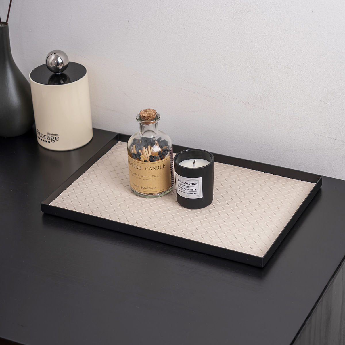 Cross-Border Simple Woven Leather Tray Rectangular Creative Ornaments Storage Tray Hotel Home Decoration Tray