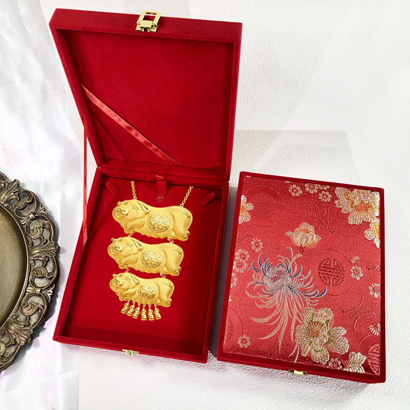 Large Pig Brand Broam Cloth Storage Box Wedding Engagement Festive Gold suit Jewelry Display Gift Box