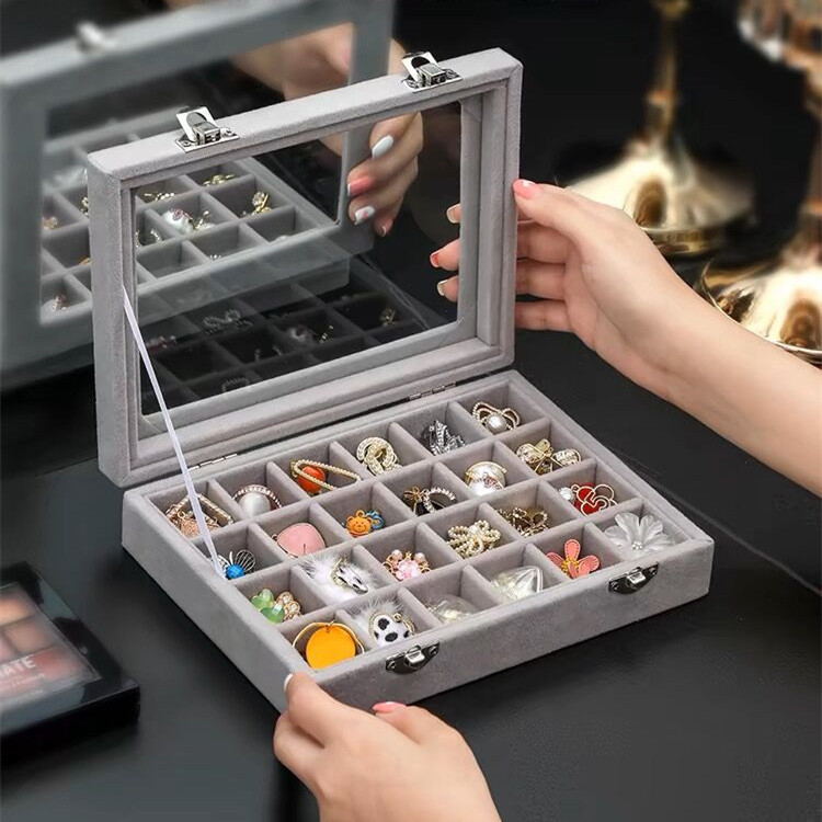Flannel jewelry storage box small size multi-functional necklace ring storage tray ear studs jewelry display jewelry box dustproof