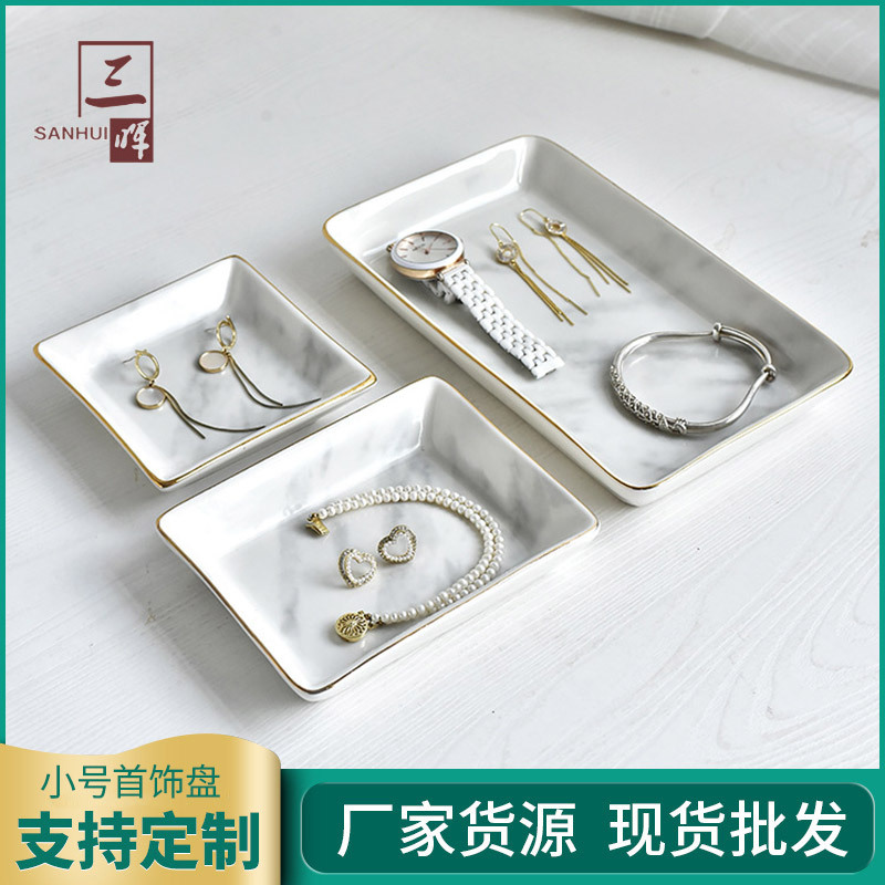 Nordic Simple Marble Pattern Ceramic Jewelry Display Rack Phnom Penh Large small size Jewelry Tray Jewelry Tray