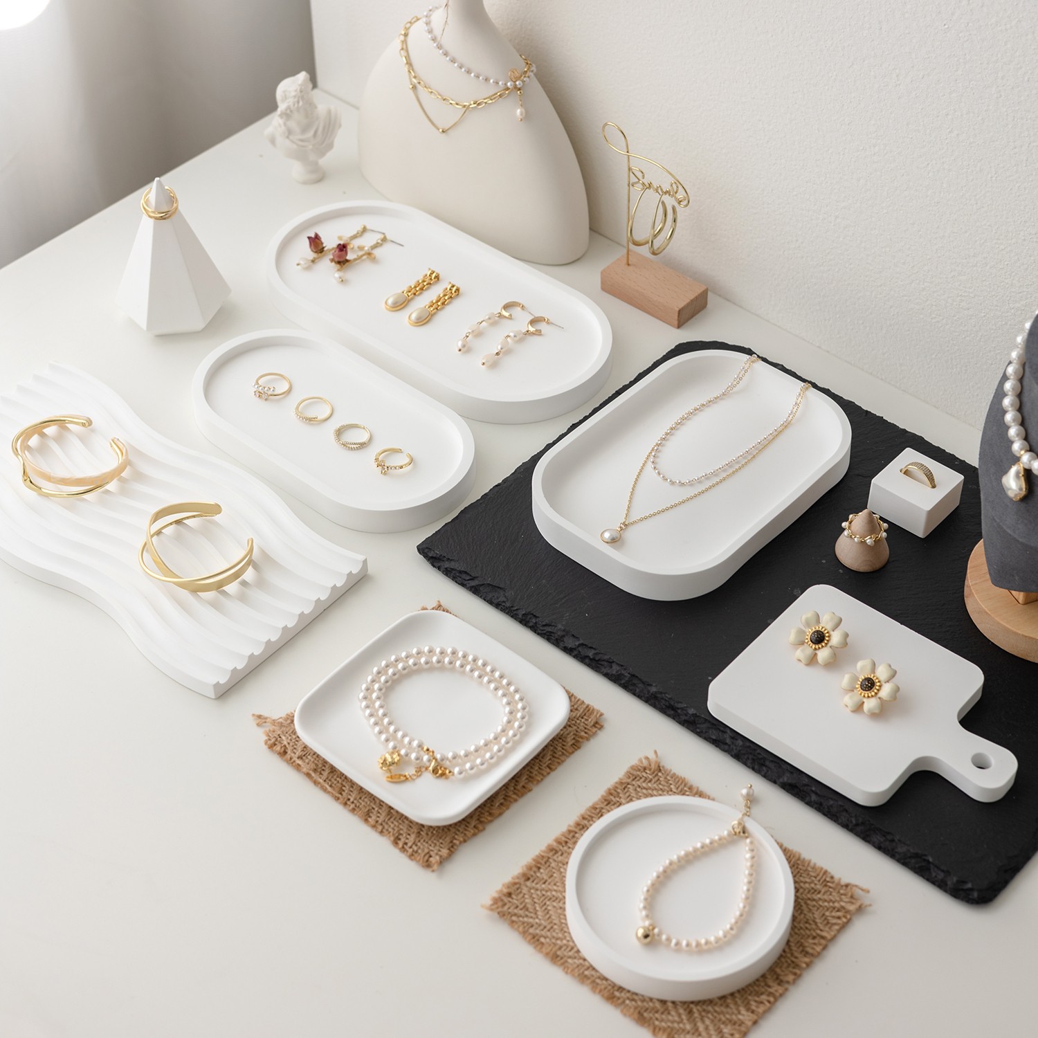 Simple jewelry tray white gypsum jewelry display tray jewelry store display photo props atmosphere decoration