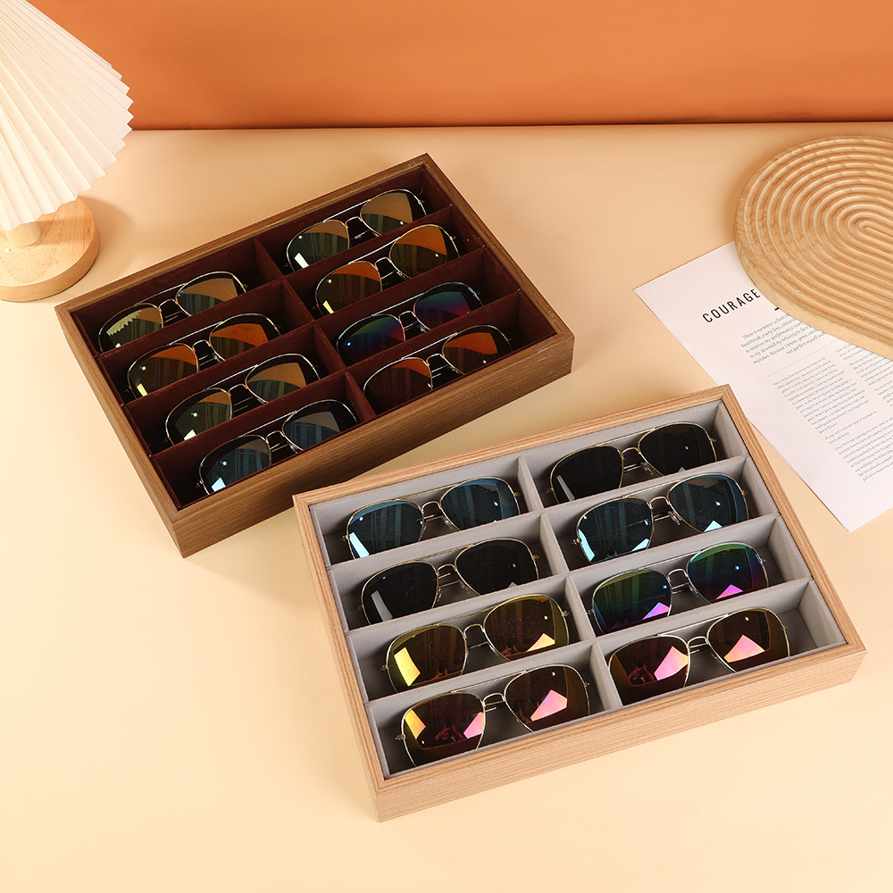 Glasses Storage Jewelry Box Wooden Glasses Case High-End Skylight Multi-8 Compartment Dust-Proof Sunglasses Sunglasses Jewelry Display