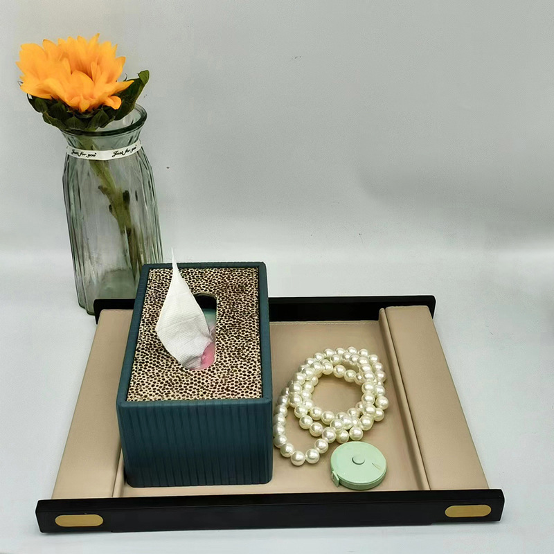 Model House High-End Aromatherapy Tray Bedroom Cloakroom Living Room Coffee Table Storage Tray New Chinese Style Leather Decorative Ornaments