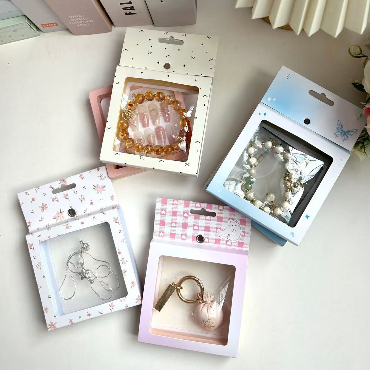 High-End Bracelet Suspension Box Envelope Refrigerator Magnet Jewelry Display Packaging Pe Box Paper Sleeve with Hanging Hole Custom Logo