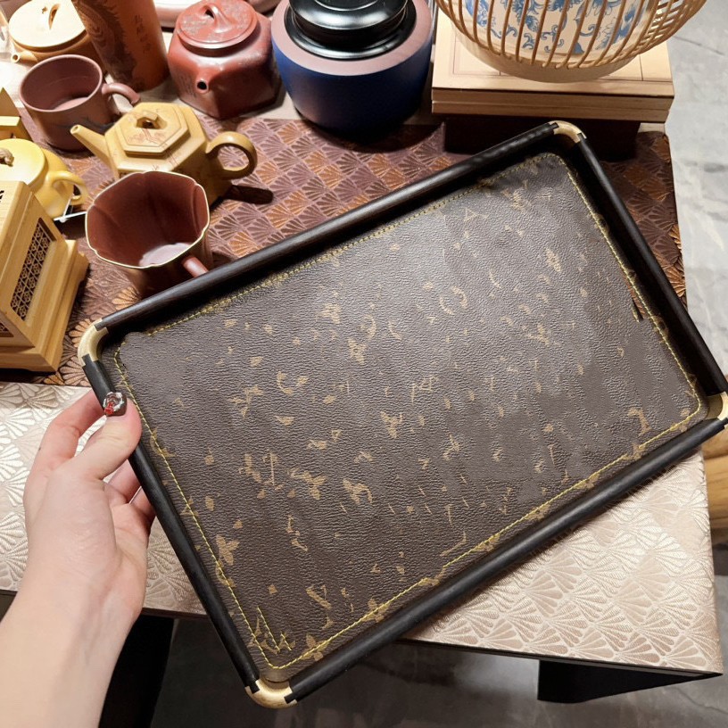 Light Luxury Jewelry Entrance Storage Plate, Second-Hand High-End Black Leather Aromatherapy Tray, French Jewelry Ornaments Model