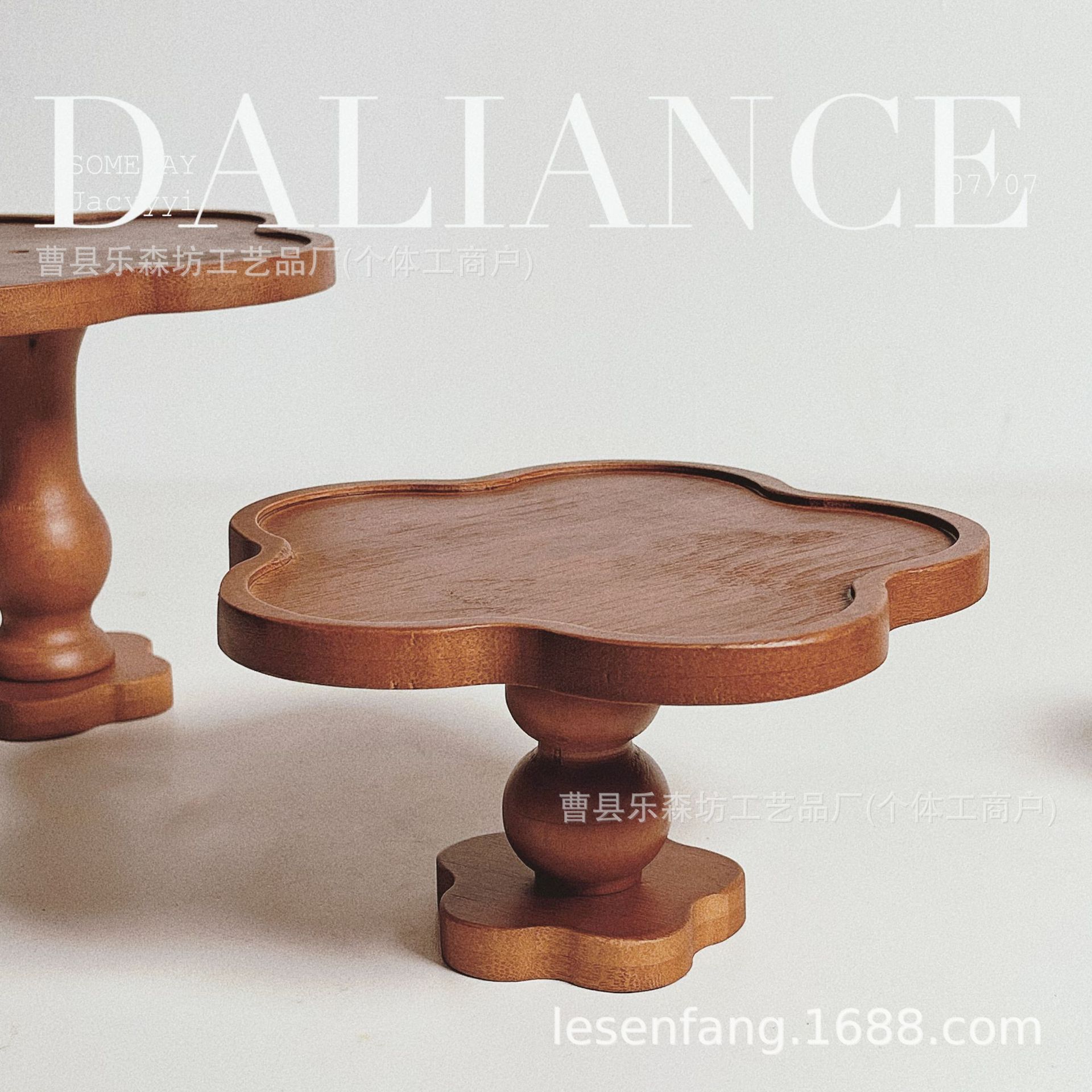 French Style High Foot Tray Vintage Light Luxury Desktop Decoration Aromatherapy Candle Plate Lace Storage Wooden Pallet Crafts