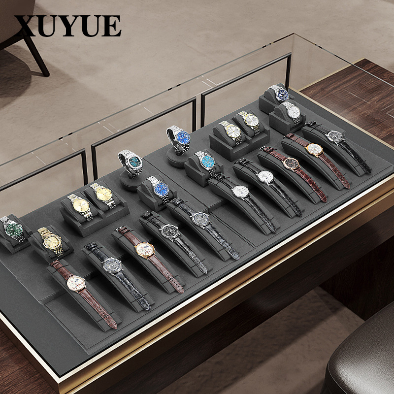 Xuyue new gray microfiber watch flat cabinet display props trapezoidal display stand jewelry watch bracelet seat in stock