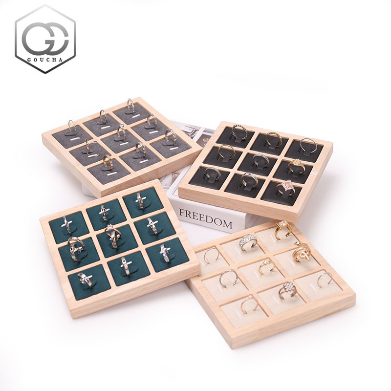 Solid wood simple jewelry display board ring ring ring pair ring storage organizing rack jewelry diamond ring display plate live support