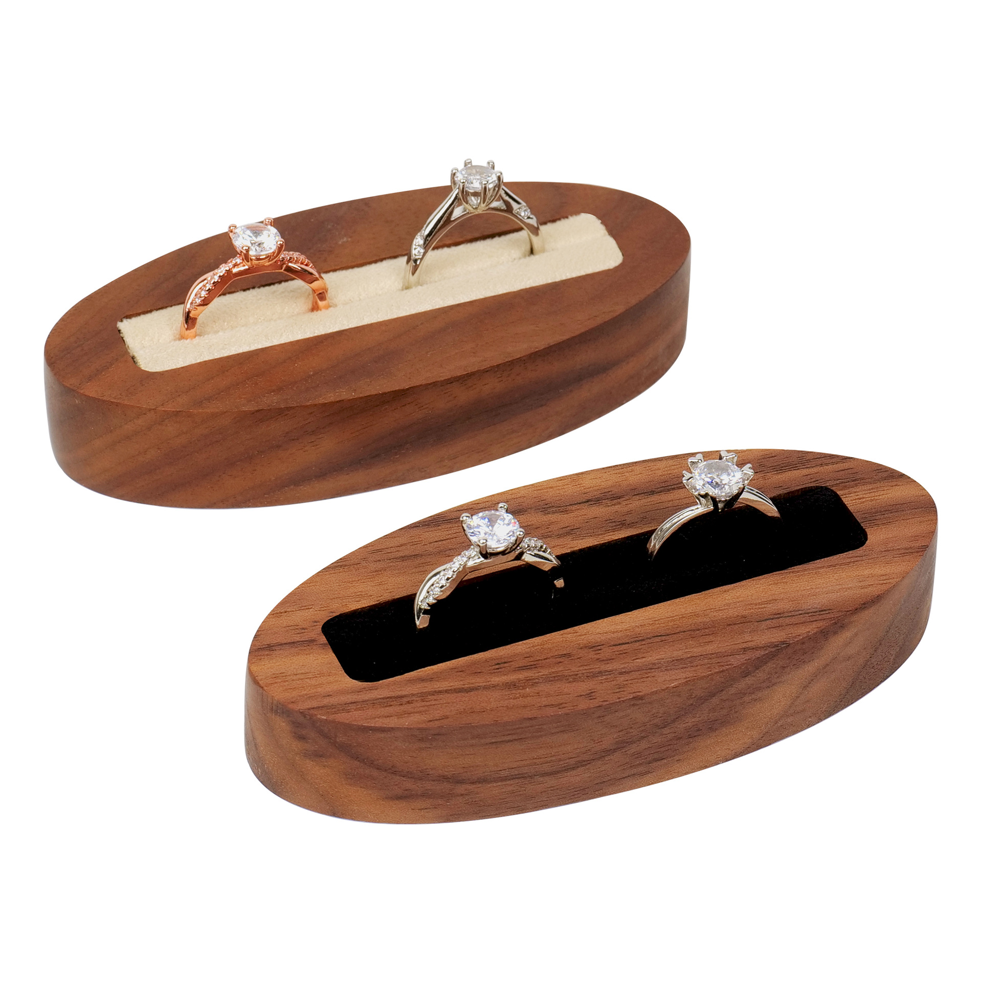 Cross-border Jewelry Seat Walnut Oval Storage Wedding Engagement Ring Earrings Jewelry Box Jewelry Display Seat