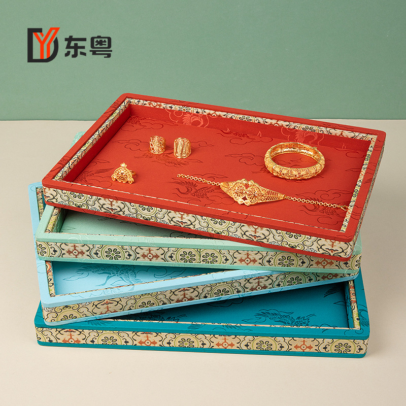 Big Sale Price Retro Embroider Solid Wood Display Plate Chinese Style Jade Jewelry Jewelry Viewing Pallet Cultural Toy Bracelet Prop Plate