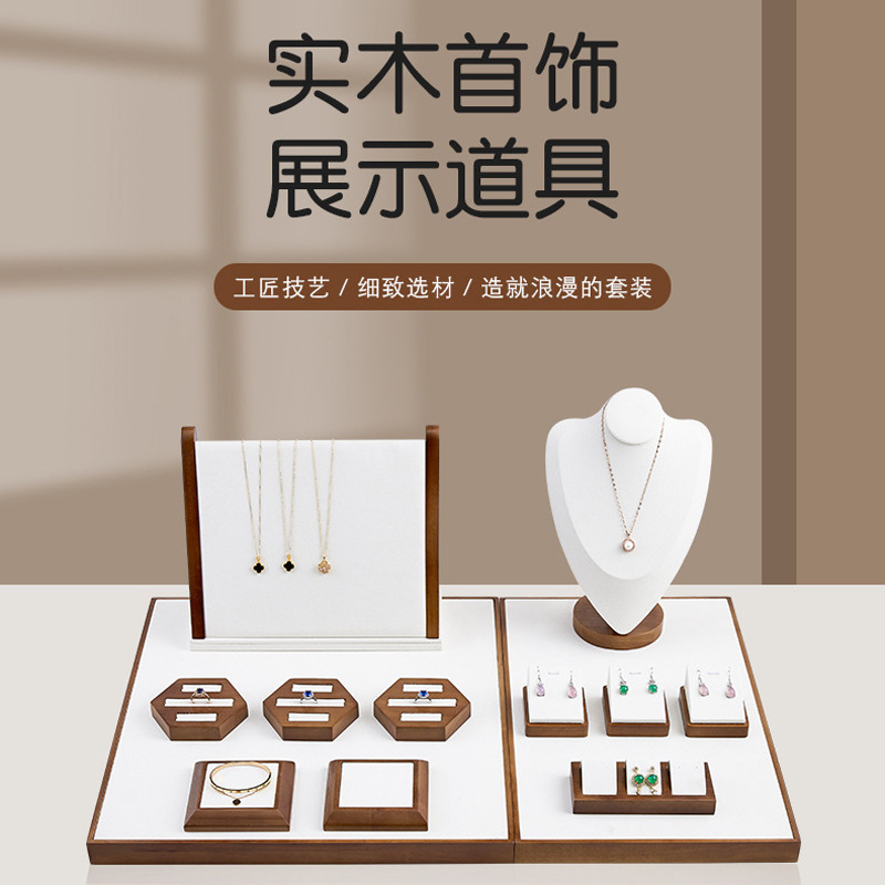 High-end wooden jewelry display props ring necklace display tray jewelry shop counter jewelry display stand display