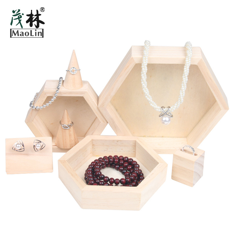 Maolin Creative Solid Wood Hexagonal Jewelry Display Tray Necklace Bodhi Earrings Ring Jewelry Storage Box