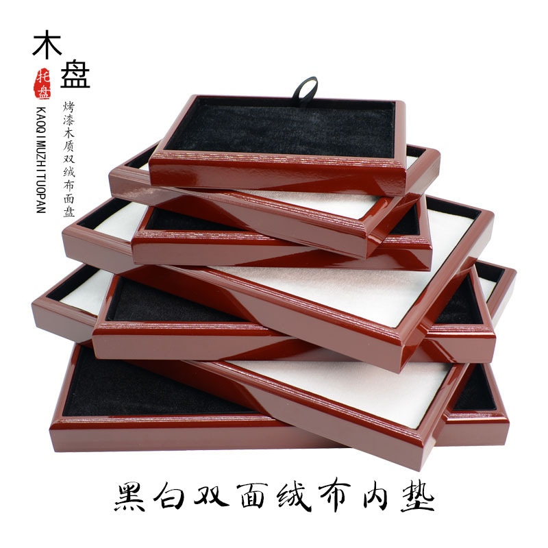 Jewelry Jade Wooden Watching Tray Plush Beads Display Jewelry Accessories Display Black and White Double-sided Props Wholesale