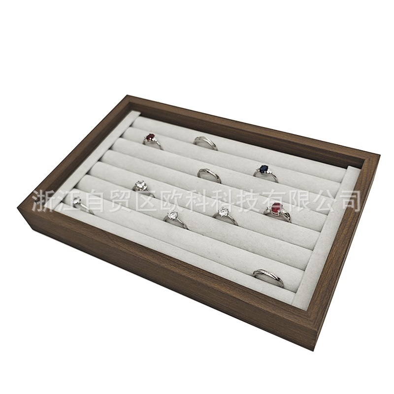 Jewelry Tray Walnut Flannel Ring Earrings Necklace Bracelet Display Large Capacity Jewelry Storage Tray