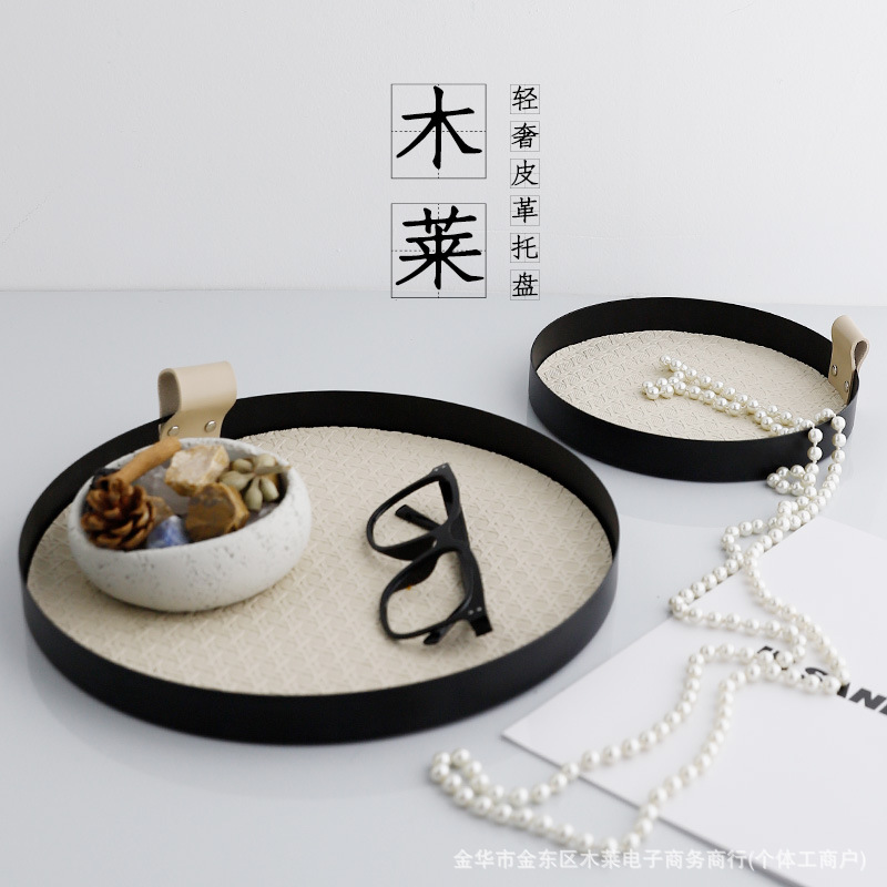 Danish Light Luxury Jewelry Entryway Storage Tray Black Leather Aromatherapy Tray Decorative Ornaments Creative Storage Tray