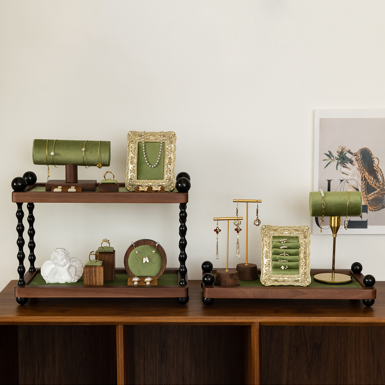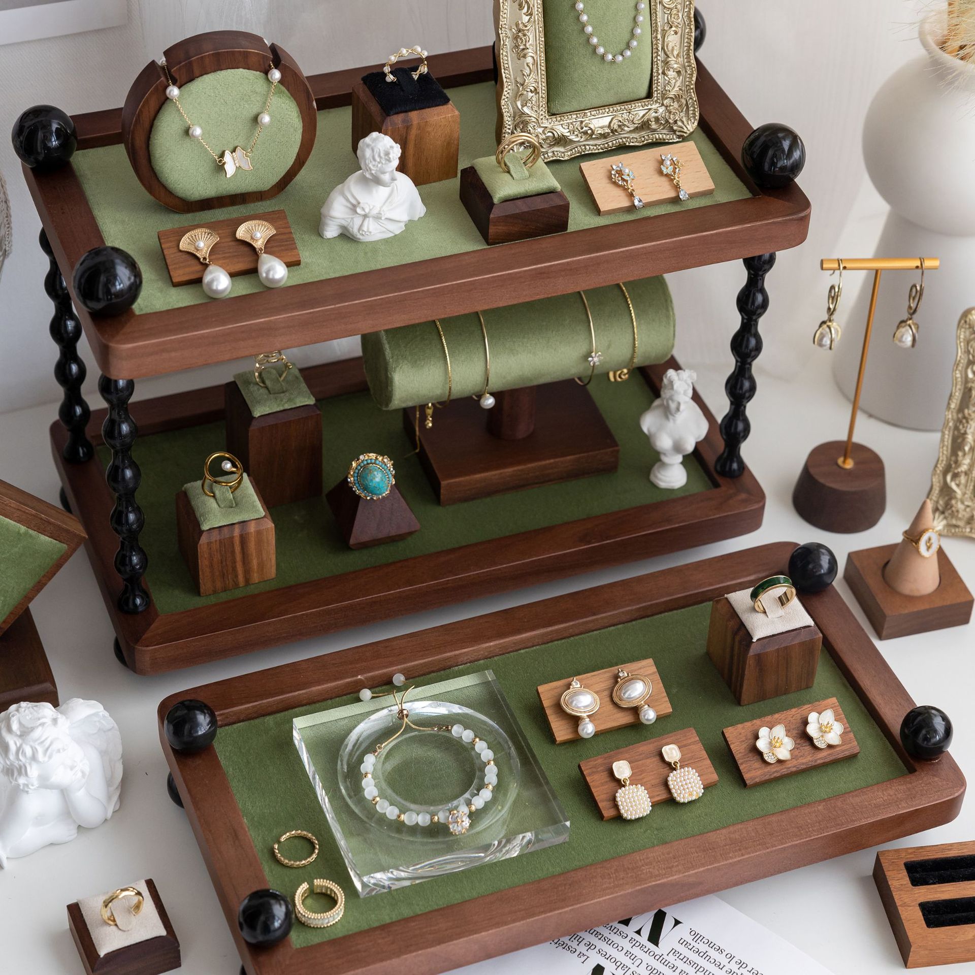 Medieval Style Jewelry Display Rack Retro Green Velvet Tray Jewelry Bracelet Ring Multi-Layer Jewelry Storage Display Rack