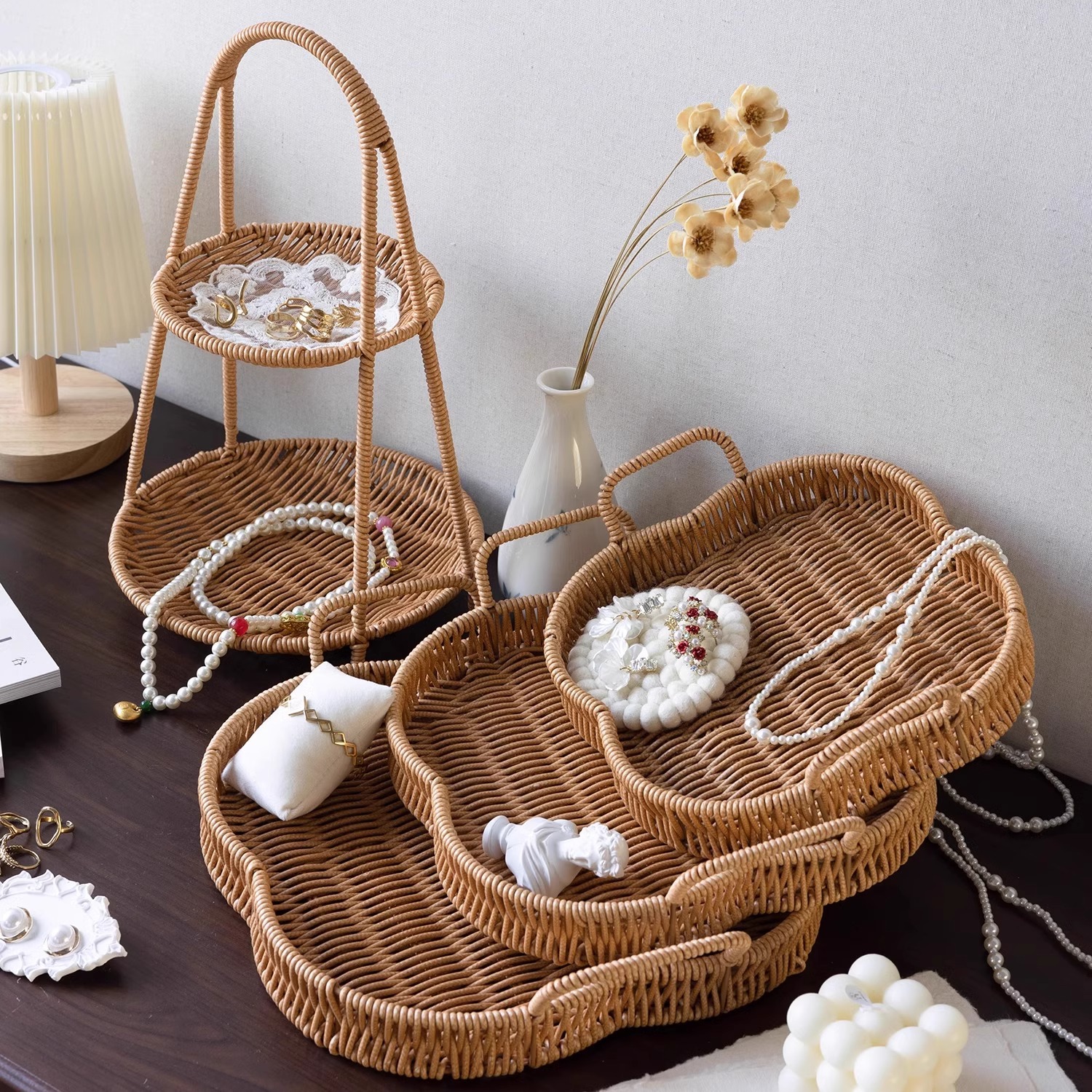 Rattan-like Jewelry Display Rack Vintage Earrings Necklace Basket Display Jewelry Bracelet Storage Plate Jewelry Photo Props