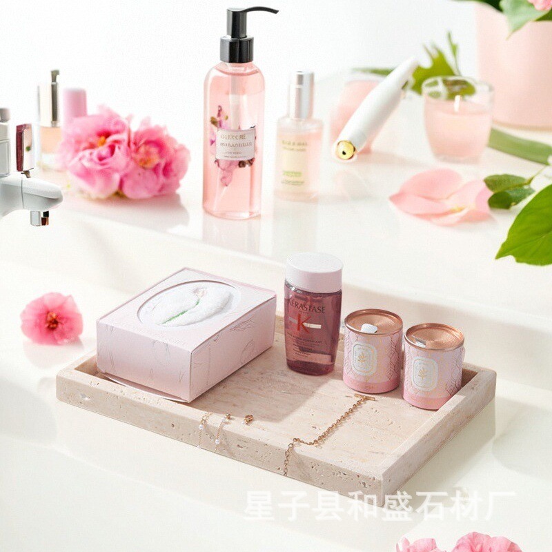 Factory Wholesale Natural Marble Tray Bathroom Household Storage Tray Rectangular Jewelry Storage Tray Water Cup Tray