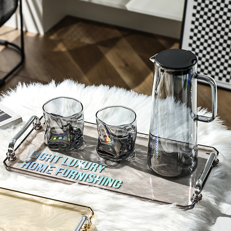 Light Luxury Tray Ins Feng Shui Cup Rectangular Blue Household Tea Cup Tea Tray Cake Dinner Plate Storage Ornaments Cup